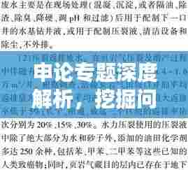 在申论专题分析中,深度挖掘问题至关重要,要全面理解题目背景,明确分析专题的核心要点,通过收集相关资料、数据,对问题展开全方位、多角度的剖析,具体可从以下几个方面入手:
