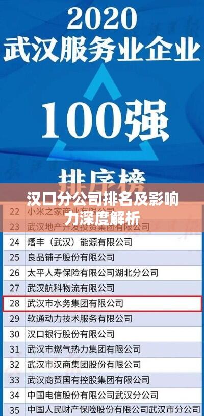 随着经济的发展和市场的繁荣,汉口分公司作为地区的重要一环,其在行业中的地位和影响力日益凸显,本文将探讨汉口分公司的排名及其背后的因素,以期对读者有更深入的了解。