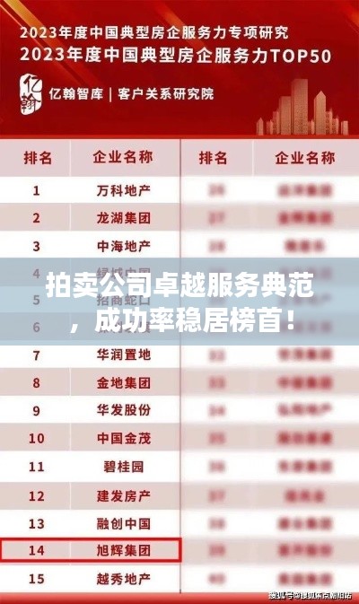 随着经济的发展和市场的繁荣,拍卖行业日益兴盛,在众多拍卖公司中,有一家公司在业界取得了显著的成绩,以卓越的服务和极高的成功率在拍卖行业中排名第一,本文将介绍这家公司的成功经验及服务特色。