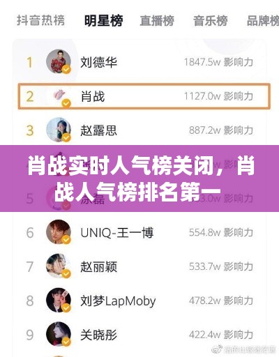 近年来,随着网络文化的蓬勃发展,明星人气榜单成为了衡量艺人热度的重要指标之一。在这些榜单中,肖战作为一位备受关注的年轻演员,一直保持着较高的排名。然而,近日,肖战实时人气榜突然宣布关闭,引发了网友们的广泛关注和热议。