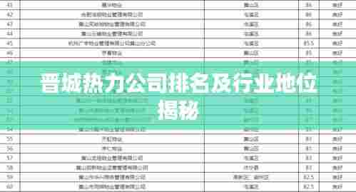 晋城作为山西省的重要城市之一,其热力行业的发展引人注目,随着城市化进程的加快,热力公司的角色日益凸显,本文将探讨晋城热力公司的排名及其行业地位。