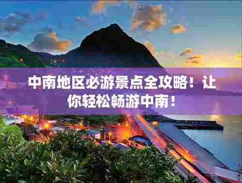 中南地区拥有丰富的旅游资源,无论是自然景观还是历史文化,都让人流连忘返,在旅游过程中,我们要注意安全,遵守规定,尊重文化,享受旅程,希望这份旅游攻略能帮助你更好地了解中南地区,为你的旅行提供参考,祝你在中南地区有一个愉快的旅程!