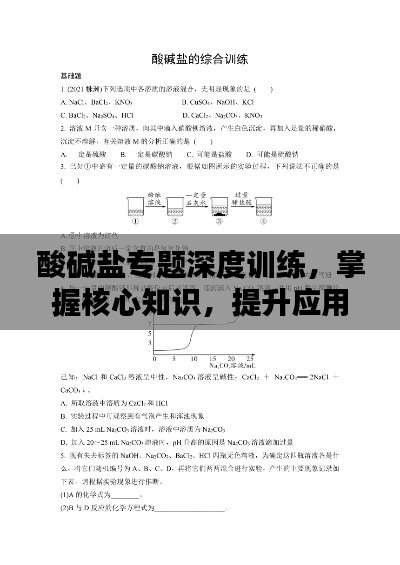 酸碱盐是化学学科中的基础概念,对于理解化学反应机制、工业生产和日常生活中的化学现象具有重要意义,本文将围绕酸碱盐专题训练展开,旨在帮助学生深化理解并提升应用能力。
