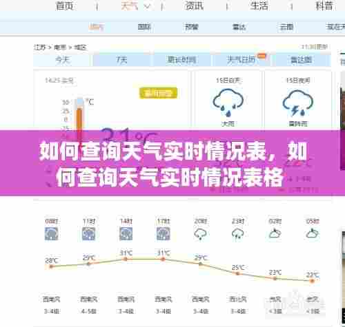 查询天气实时情况表的方法多种多样,您可以根据自己的需求和习惯选择合适的方式。无论是官方网站、手机应用程序还是在线天气预报网站,都能够为您提供及时、准确的天气信息。通过掌握这些查询方法,您将能够更好地应对天气变化,做出合理的出行和生活安排。