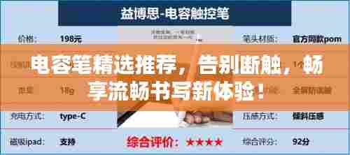 在现今数字化的时代,电子设备如平板电脑、触控屏等已成为我们日常生活与工作中不可或缺的工具,使用这些设备时,一款性能出色的电容笔能大大提高我们的工作效率和用户体验,本文将为您推荐几款避免断触,流畅书写的电容笔,带您领略全新的书写体验。