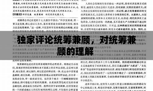 在当今社会,信息爆炸、观点纷呈的时代背景下,如何做到统筹兼顾,即全面、平衡地考虑问题,成为了一个至关重要的能力。无论是个人发展、企业运营还是国家治理,统筹兼顾都是实现长远目标和可持续发展的重要保障。