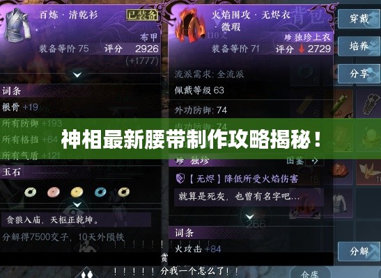 在众多的游戏中,装备的品质与属性对于玩家的战斗力有着至关重要的影响,作为神相游戏中的重要装备之一,腰带的打造与升级更是玩家们关注的焦点,本文将为大家带来神相最新打造腰带攻略,帮助大家了解如何打造一条高品质腰带。