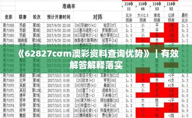 在此手册中,我们将详细解释《62827cσm澳彩资料查询优势》中的基本概念和专业术语,以便政策和措施的理解和执行。