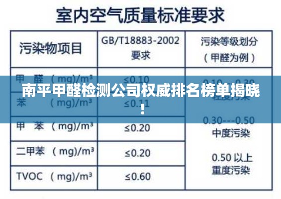 随着人们对室内环境质量的关注度不断提高,甲醛检测成为了越来越多人关注的焦点,在南平市,有多家甲醛检测公司致力于提供优质的服务,本文将对南平市的甲醛检测公司进行综合排名,以便消费者能够更好地了解并选择适合自己的服务。