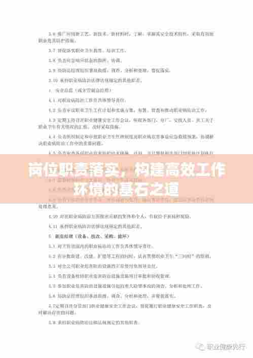 岗位职责有效落实是企业运营过程中的关键环节,对于提升工作效率、优化组织运行具有深远影响,随着市场竞争日益激烈,企业对于岗位职责的执行力要求越来越高,本文将探讨如何实现岗位职责的有效落实,为构建高效工作环境提供理论支持和实践指导。