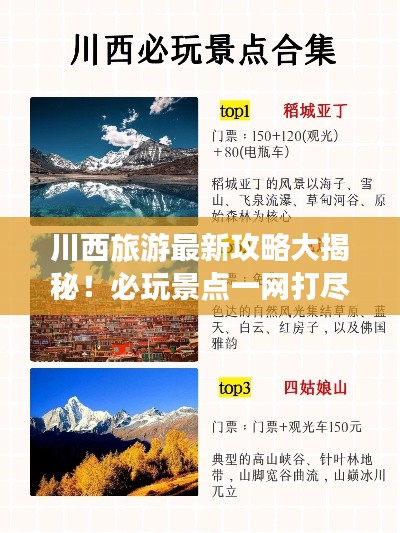 川西旅游以其丰富的自然和文化资源吸引着无数游客,本篇攻略介绍了川西的热门景点、最新旅游攻略、行程推荐和注意事项,希望能为游客提供帮助,让游客在川西留下美好的回忆。