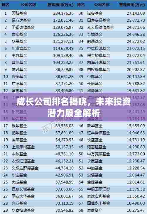 成长公司排名揭晓,未来投资潜力股全解析