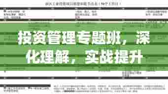 在当今这个竞争激烈的时代,投资管理不仅仅是一门科学,更是一种实战技能,无论是投资者还是企业管理者,都需要掌握投资管理的核心知识,才能在复杂多变的市场环境中立于不败之地,而投资管理专题班就是为了帮助学员深入理解投资管理的理念、方法和技巧,提高实战能力。
