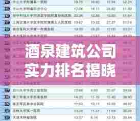 随着酒泉市经济的持续繁荣和城市化进程的加快,建筑业在酒泉市的发展势头迅猛,众多建筑公司在这一背景下崭露头角,为酒泉市的建筑行业发展注入了新的活力,本文将为您详细介绍酒泉建筑公司的排名及相关情况。