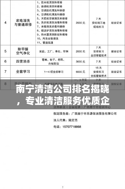 随着城市化进程的加快,清洁行业逐渐受到越来越多的关注,南宁作为广西的省会城市,其清洁行业的发展也备受瞩目,本文将介绍南宁清洁公司的排名,为广大市民和从业者提供参考。